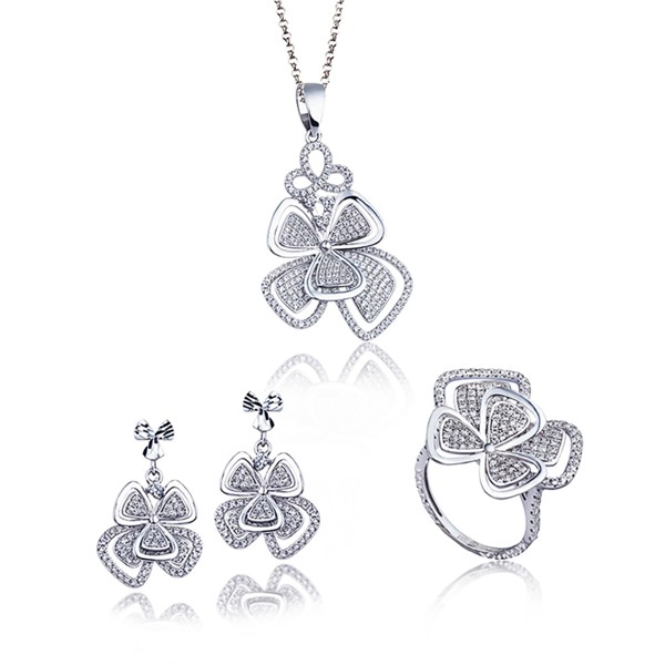Bộ trang sức màu trắng chất liệu vàng 18k gắn đá CZ trắng.