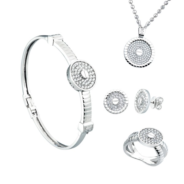 Bộ trang sức màu trắng chất liệu vàng 18k gắn đá CZ trắng.