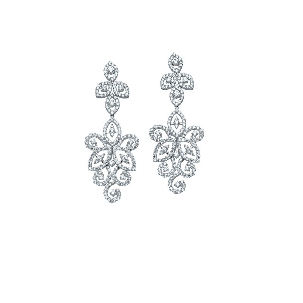 Bông tai màu trắng chất liệu vàng 18k gắn đá CZ trắng.