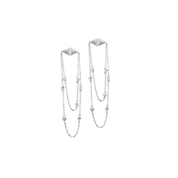 Bông tai màu trắng chất liệu vàng 18k gắn đá CZ trắng.