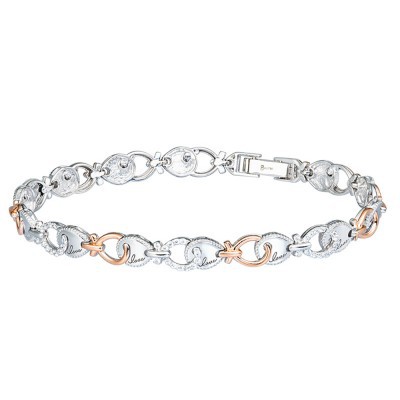 Lắc tay nữ màu trắng-hồng chất liệu vàng 18k gắn đá CZ trắng.